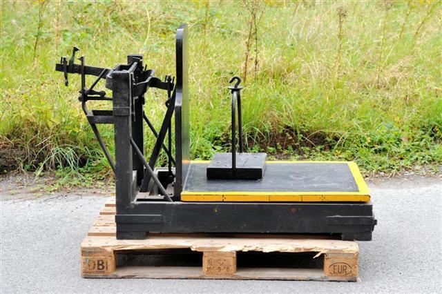 BeschrijvingDeze weegschaal heeft een zwarte voetplaat met gele rand. Bovenaan staat een stang met inscripties van gewichten (tot 5000 kg), waarover het gewicht geschoven werd om een juiste meting te verkrijgen.