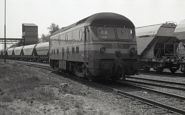BeschrijvingDiesellocomotief 5920 aan het werk in de haven. Op de achtergrond zijn een aantal graanwagens en een silo te zien.