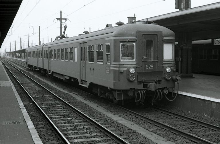 TitelMotorstel 629 aan het perron in station Brussel-Zuid