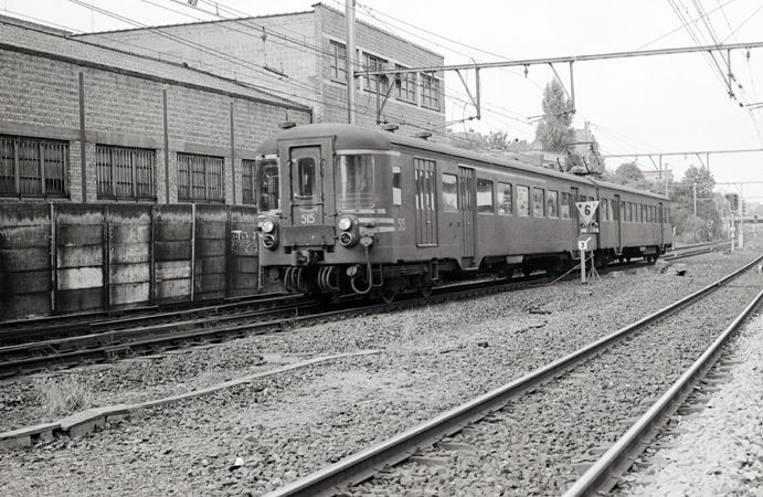 Dit motorstel behoort tot de reeks 00 schijf 1955. Rechts naast het motorstel zien we een bord met een tijdelijke snelheidsbeperking tot 60 km/u ('6'). Blijkbaar zijn er dus opwaarts van dit bord spoorwerken aan de gang. Schenking van Myriam Hendrickx.