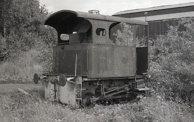Deze fotogroep bevat vier negatieven. Op de foto's zien we een stoomlocomotief met verticale ketel. De rechtstaande ketel maakte een korte wielafstand mogelijk, waardoor heel korte bochten konden worden genomen. De locomotief staat op een verlaten deel van het spoorwegterrein. Schenking van Myriam Hendrickx.