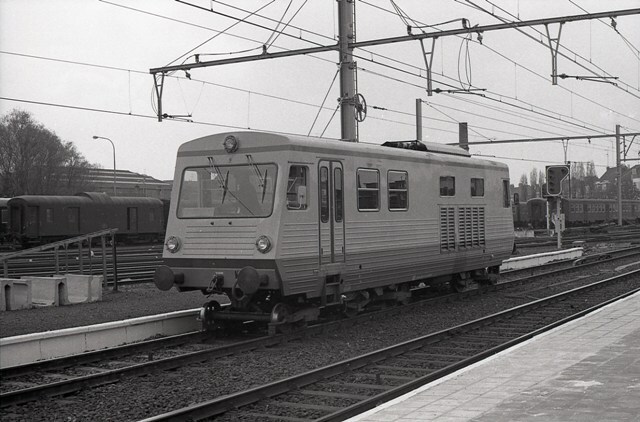 Dit spoorvoertuig werd door de dienst ES (Elektriciteit en Seininrichting) gebruikt voor het nazicht van de sporen. Op de achtergrond zien we het sporencomplex bestemd voor reizigersrijtuigen.