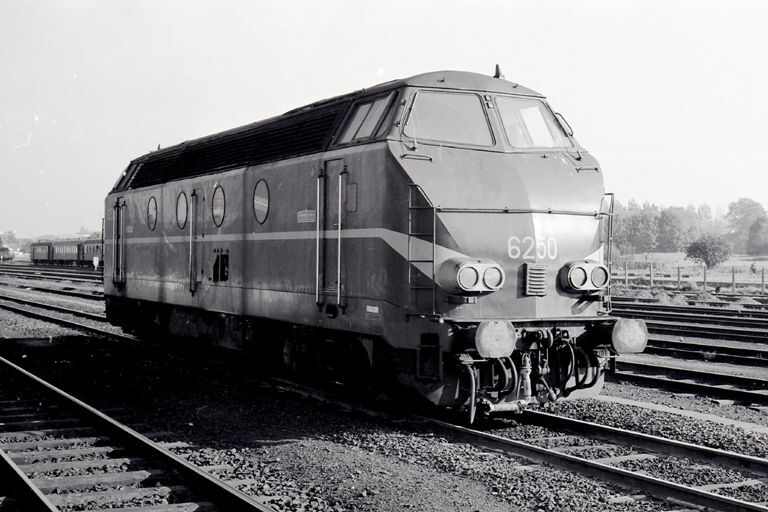 BeschrijvingDeze locomotief behoort tot de reeks 62 (ex-type 212). Op de achtergrond zien we enkele reizigersrijtuigen.