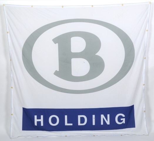 BeschrijvingWitte vlag met blauw/grijs logo.