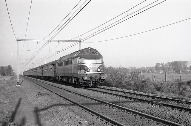 Op de foto zien we diesellocomotief 5124 te Deurle. Zij sleept een lange reizigerstrein, bestaande uit K -rijtuigen. De locomotief draagt reeds een gele schildering met doel om beter zichtbaar te zijn.