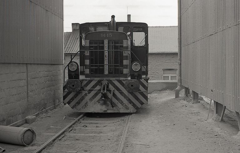 BeschrijvingDeze locomotief behoort tot de reeks 91 (ex-type 123.1). Ze staat op een spoor tussen bedrijfsgebouwen te wachten op een volgende dienst.