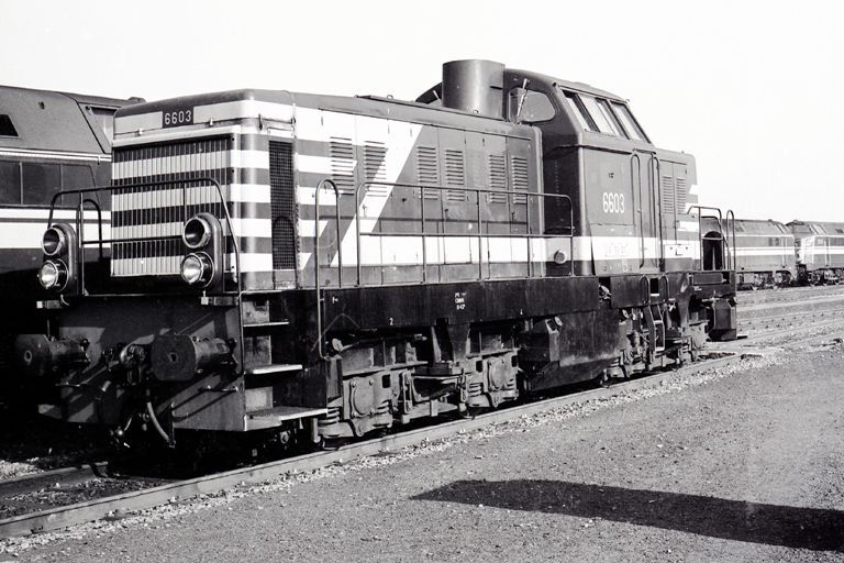 TitelDiesellocomotief 6603 in de omgeving van de tractiewerkplaats Hasselt
