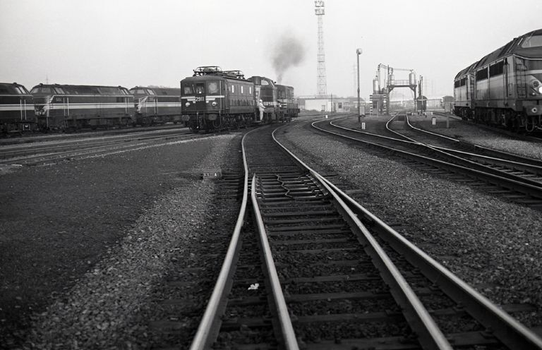 Locomotief 2911 behoort tot de reeks 29. Vermits geen bovenleiding aanwezig is, wordt de locomotief verplaatst door middel van een diesellocomotief. Op de voettrede van de elektrische locomotief staat een rangeerder die aanwijzingen geeft aan de bestuurder van de diesellocomotief. Schenking van Myriam Hendrickx.