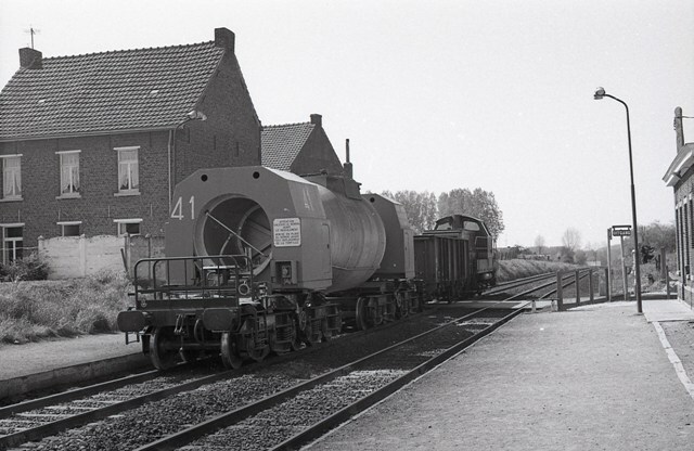 BeschrijvingOp de foto zien we een korte goederentrein gesleept door rangeerlocomotief 7316. De trein bestaat o.a. uit een wagen bestemd voor het transport van vloeibaar ruwijzer, een zogenaamde 'torpedowagen'. Tollembeek is gelegen aan spoorlijn 123 (Geraardsbergen - Edingen - 's-Gravenbrakel).