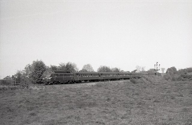 BeschrijvingOp de foto zien we diesellocomotief 6250 met een reizigerstrein bestaande uit K-rijtuigen. In de achtergrond zien we een kandelaarsein.