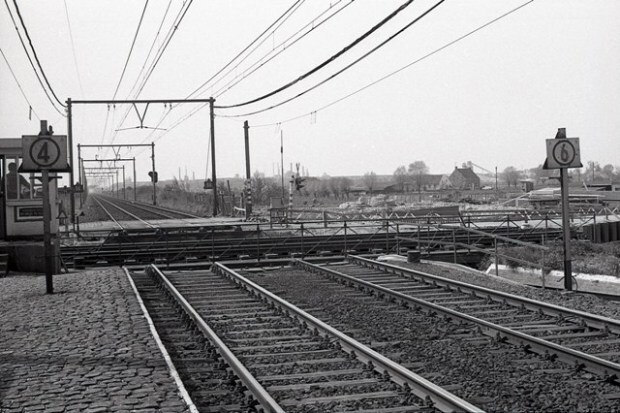 De foto toont een draaibrug in Oudenburg die het kanaal Passendale-Nieuwpoort overspant. Links, achter het bord met het cijfer '4' zien we in het gebouwtje de man die de brug bedient. Deze draaiburg werd in 1983 vervangen door een spoorwegviaduct. Schenking van Myriam Hendrickx.