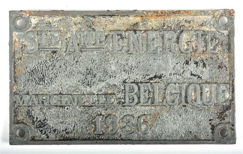 Deze metalen plaat werd door de constructeur ter identificatie aangebracht op het door hem vervaardigde rollend materieel. De Société Anonyme Energie Marcinelle werd gesticht in 1899 en gesloten in de jaren 1950.