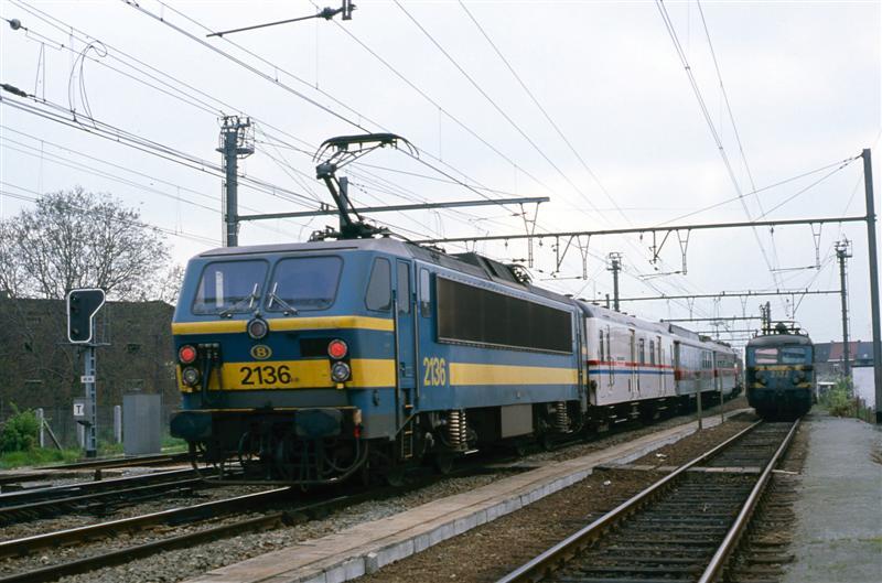 Deze fotogroep bevat 3 dia's. Een elektrische locomotief van de reeks 21 duwt een testtrein bestaande uit drie rijtuigen van de Franse spoorwegen om de stabiliteit van het spoor te meten. De trein werd getrokken door een elektrische locomotief van de SNCF. Op het naastliggende spoor zien we een elektrische locomotief reeks 23. Schenking van Myriam Hendrickx.