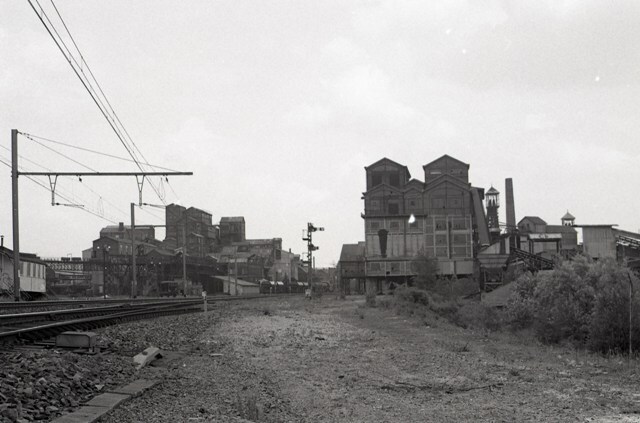 Links en rechts van de sporen zien we de kolenwasserij "Charbonnages Réunis de Roton-Farciennes" te Tergnée. Vooraan zien we een wisselmotor en op de achtergrond een mechanische seinpaal. Aan de kolenmijn staan een aantal tremelwagens klaar. Schenking van Myriam Hendrickx.