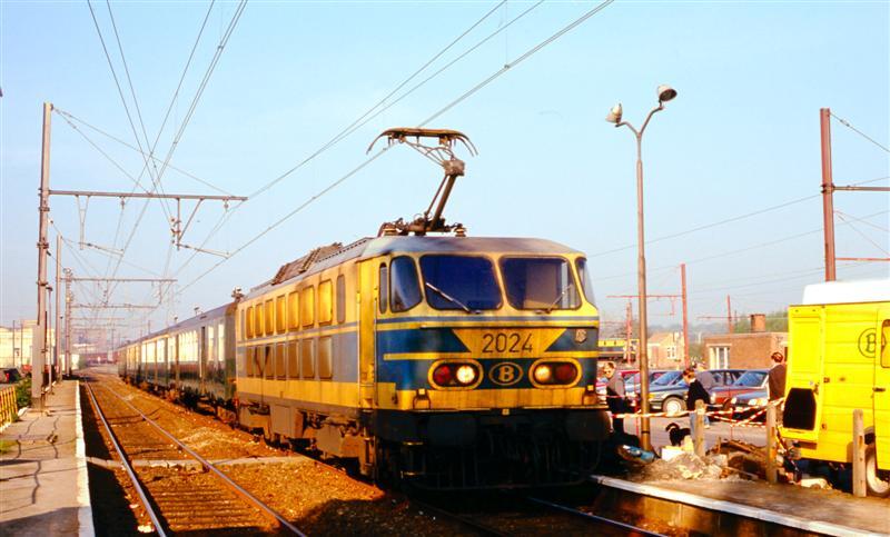 Deze fotogroep bevat negen dia's. Elektrische locomotief 2024 behoort tot de reeks 20. Zij sleept een reizigerstrein samengesteld uit M 2-rijtuigen. De trein werd ingelegd door de vereniging TSP (Toerisch Spoor Patrimonium). Schenking van Myriam Hendrickx.