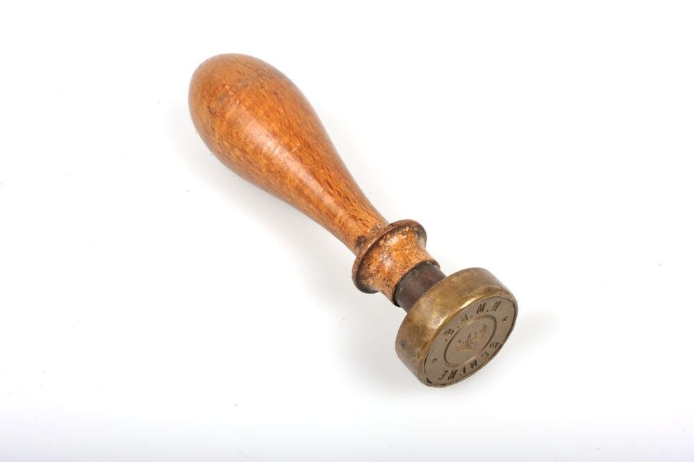 Deze stempel met reliëf werd gebruikt bij de verzegeling van de geldzakken waarin de inkomsten van het station werden getransporteerd. Hiervoor werd de stempel in warme rode lak gedrukt, waardoor de tekst en de afbeelding van het gevleugelde wiel in reliëf verschenen op de lakzegel.