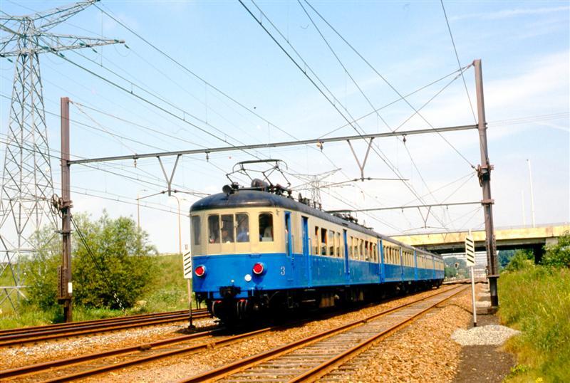Deze fotogroep bevat vier dia's. We zien een elektrisch motorstel uit 1935. De eerste afbeelding toont de achterkant van het stel, op het volgende beeld zien we de voorkant. Op de eerste foto zien we ook twee mistbakens (witte borden met zwarte schuine strepen). Bij mistig weer kan de machinist door de plaatsing van deze borden weten hoe ver hij van een sein verwijderd is (één zwarte streep komt overeen met 50 m). Schenking van Myriam Hendrickx.