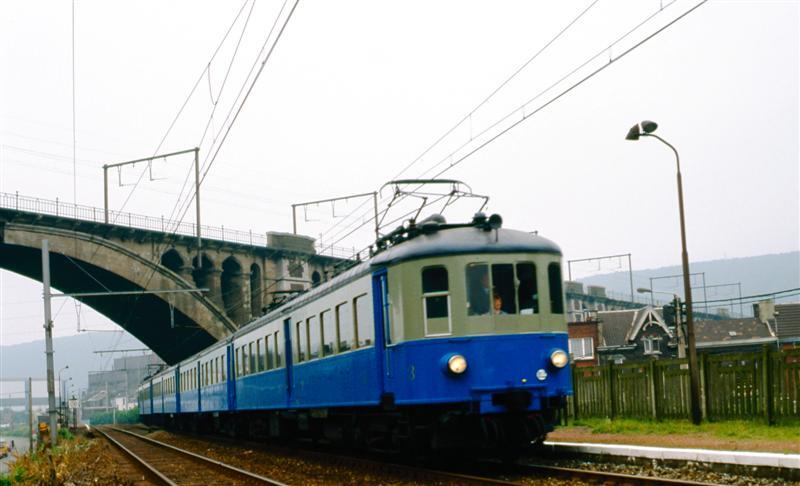 Deze fotogroep bevat vier dia's. Een elektrisch motorstel uit 1935 staat aan het perron. De eerste afbeelding toont de voorkant van het stel, op het volgende beeld zien we de achterkant. Op de eerste foto zien we op de achtergrond een stenen spoorwegviaduct. Schenking van Myriam Hendrickx.