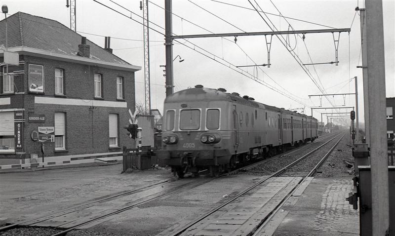 Dit drieledig dieselmotorstel behoort tot de reeks 40. Het motorstel verlaat het station Berlaar en rijdt net over een gesloten overweg. In het laatste rijtuig bevindt zich de tractiemotor en een bagageafdeling.