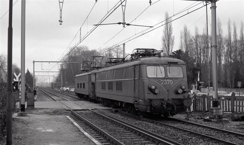 Deze locomotief behoort tot de reeks 23. Zij wordt op sleeptouw genomen door een locomotief van dezelfde reeks en beiden voeren ze testritten uit op de pas geëlektrificeerde lijn 15. De locomotieven rijden op tegenspoor (rechts van de rijrichting) en rijden net over een gesloten overweg. Schenking van Myriam Hendrickx.
