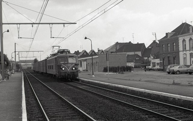 Deze fotogroep bevat vier negatieven. Op alle foto's zien we elektrische locomotief 2368 aan het perron in station Quaregnon. Zij sleept drie M 2-rijtuigen. Op het perron links staan een schuilhuisje en lantaarnpalen. Naast de trein staat het stationsgebouw. Quaregnon ligt langs de lijn 97 (Bergen - Franse grens). Schenking van Myriam Hendrickx.