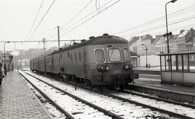 BeschrijvingDit drieledige motorstel behoort tot de reeks 40. Het staat aan het perron in station Lier. Rechts zien we een schuilhuisje op het perron.