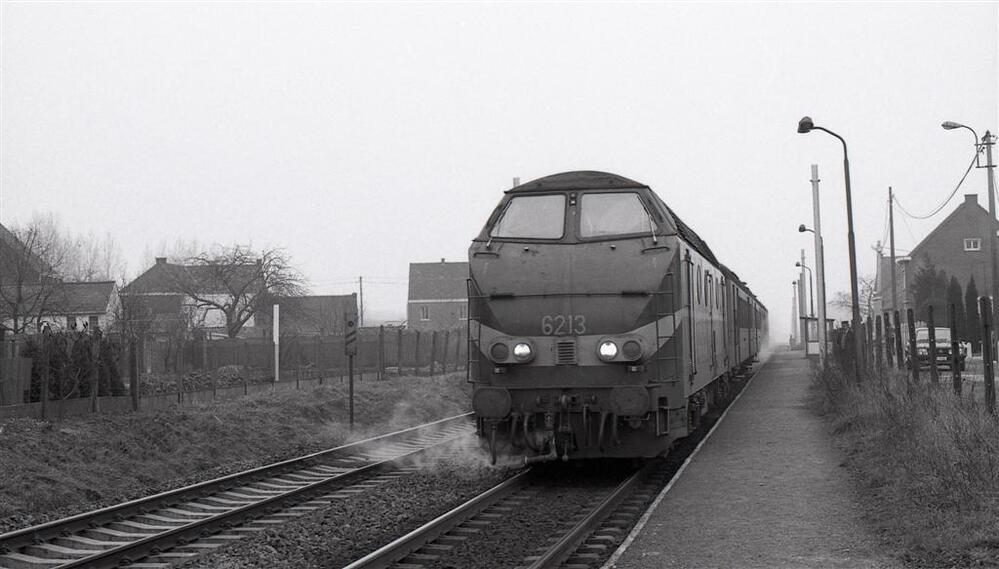 Deze fotogroep bevat vier negatieven. Op de foto's zien we een diesellocomotief van de reeks 62 die met een reizigerstrein aan het perron van de stopplaats Leeuwergem staat. Deze stopplaats is inmiddels verdwenen. De lijn is nog niet geëlektrificeerd maar de bovenleidingspalen zijn wel reeds geplaatst. Schenking van Myriam Hendrickx.