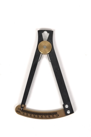 De schaal van deze wijzerplaat is vijf centimeter lang, onderverdeeld in tien halve centimeters. Naast de schaal staat 1/10 mm. Eén zijde van deze driehoek is beweeglijk en duidt de afmeting van een voorwerp aan. De bovenkant van de driehoek dient als knijper. Door er een voorwerp tussen te steken duidt de wijzer de afmeting ervan aan. Dit meetinstrument werd gebruikt voor heel nauwkeurige metingen tot 1/10 mm.