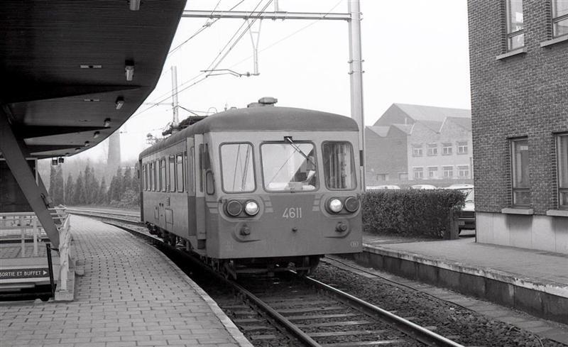 Deze fotogroep bevat vier negatieven. Op de foto's zien we motorwagen 4611(reeks 46). Links zien we een luifel en een trap die toegang geeft naar de reizigerstunnel.
