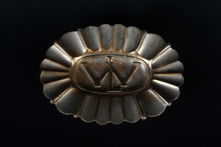 BeschrijvingMetalen asbak met gelobde rand. In het midden staat het monogram WL van de Wagons-Lits in reliëf.