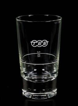 BeschrijvingOp de zijkant staat het logo van TEE in witte letters, daaronder loopt een witte lijn omheen het glas.