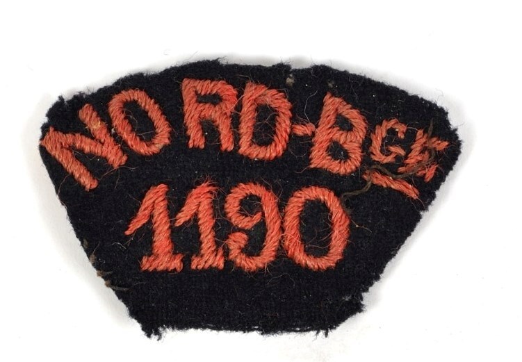 BeschrijvingZwart insigne waarop het opschrift 'Nord-Bge 1190' geborduurd werd in rode letters.