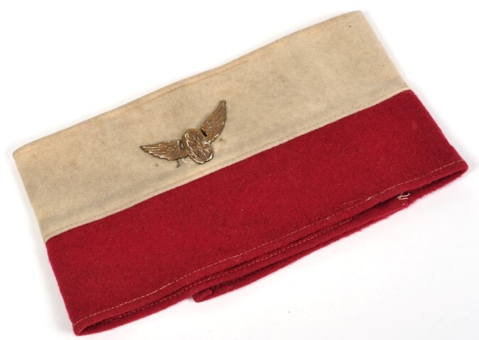 BeschrijvingMouwband van Georges Spailier, adjunct van kolonel Haenens die de militaire commandant van het station Luik-Guillemins was van 1 september 1939 tot 10 mei 1940. De mouwband is deels rood en deels beige. Er is een gevleugeld wiel opgespeld.