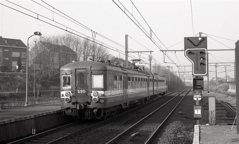 Dit motorstel behoort tot de reeks 05 schijf 1970 "Luchthaven". Rechts zien we een tegenspoorsein van het type II. Het normale treinverkeer rijdt links maar soms is het nodig (bv. tijdens werken aan de sporen) de treinen rechts te laten rijden. In dit geval regelen de tegenspoorseinen het treinverkeer. Tegenspoorseinen staan rechts van het spoor opgesteld en de lichten ervan knipperen. Schenking van Myriam Hendrickx.