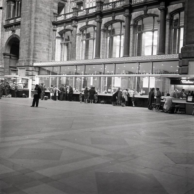 Deze fotogroep bestaat uit vijf negatieven. De foto's tonen de lokettenzaal. Reizigers schuiven aan om een treinkaartje te kopen. Een man leest zijn krant. Personen zoeken hun weg in de enorme hal. Sommigen nuttigen een drankje of een versnapering aan een van de snackbars.