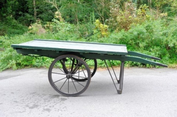 Deze kar werd op de perrons gebruikt om bagagestukken en pakjes in en uit de trein te laden. De kar bestaat uit een platte houten vloer en twee grote metalen wielen. Vooraan zijn er ook twee steunpoten en twee houten stangen om de kar voort te duwen.