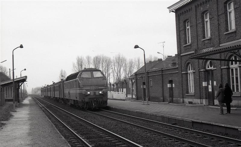 Deze locomotief behoort tot de reeks 62. Ze heeft een reizigerstrein bestaande uit M 1-rijtuigen aan de haak. Rechts zien we het stationsgebouw met twee reizigers wachtend op de aankomende trein. Op het perron links staat een stenen schuilhuisje. Schenking van Myriam Hendrickx.