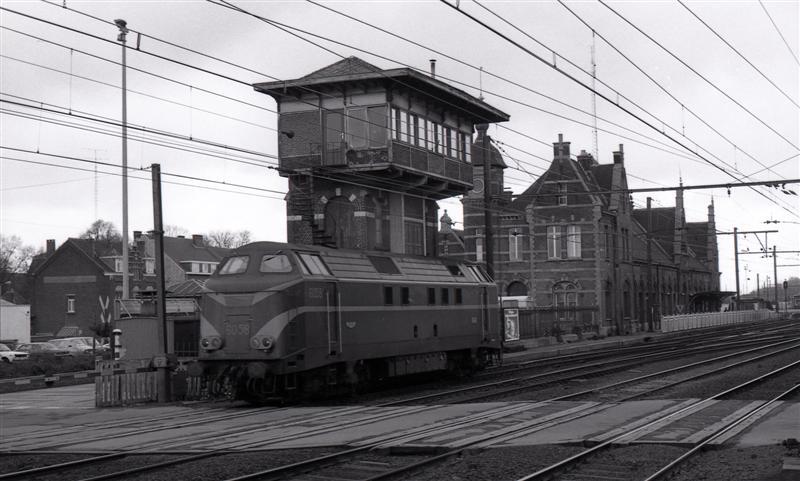 BeschrijvingDeze locomotief behoort tot de reeks 60. Centraal zien we de voormalige blokpost die de seinen van het station beheerde. Daarachter is het voormalige station te zien.