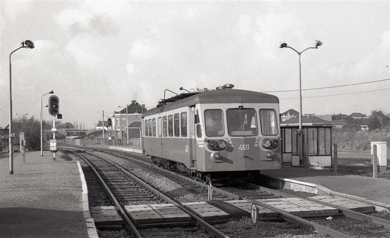 Deze motorwagen behoort tot de reeks 46. Links op het perron zien we een stopsein van het type I en rechts een schuilhuisje. Vóór de motorwagen loopt een spoorovergang voor de reizigers. Deze mag enkel gebruikt worden onder begeleiding van bevoegd personeel. Station Bascoup ligt langs spoorlijn 113 (Piéton - Manage). Schenking van Myriam Hendrickx.