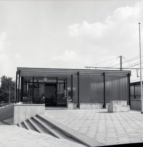 De fotogroep bestaat uit twee negatieven. De foto's tonen de voor- en zijgevel van het station. Boven de inkom hangt een stationsklok. De onderdoorgang is van een glazen wand voorzien. De compoundbovenleiding zorgt bij hoge snelheden voor een goede stroomafname door de locomotief.