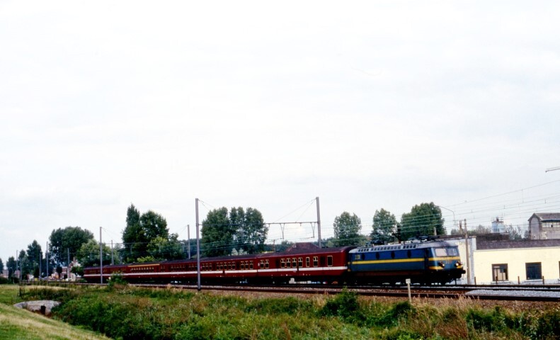 BeschrijvingEen elektrische locomotief van de reeks 22 sleept een reizigerstrein samengesteld uit M 4-rijtuigen.