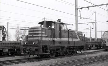 BeschrijvingDeze locomotief behoort tot de reeks 80. Ze staat opgesteld in de sporenbundel. Links zien we een platte wagen beladen met een kleine werkkraan.