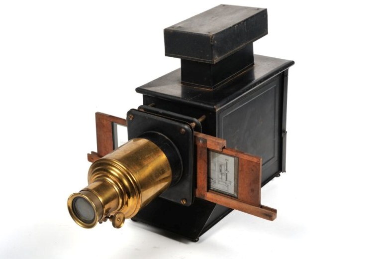 BeschrijvingDe projector bestaat uit een zwart metalen kast op pootjes waarin een lamp zit. Vooraan is een grote lens waarvoor glasplaten kunnen geschoven worden.