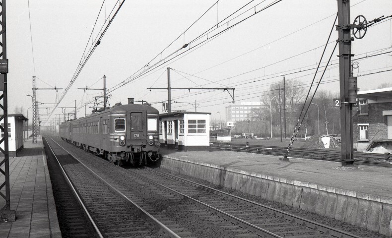 Dit tweeledig motorstel behoort tot de reeks 00 schijf 1962. Het vormt samen met motorstel 190 een reizigerstrein. Links en rechts van de trein zien we stenen schuilhuisjes.