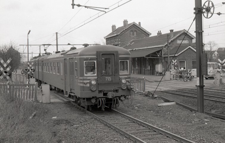 Dit motorstel behoort tot de reeks 05 schijf 1974. Het passeert juist een overweg, te herkennen aan de andreaskruisen links en rechts. Rechts zien we het stationsgebouw.