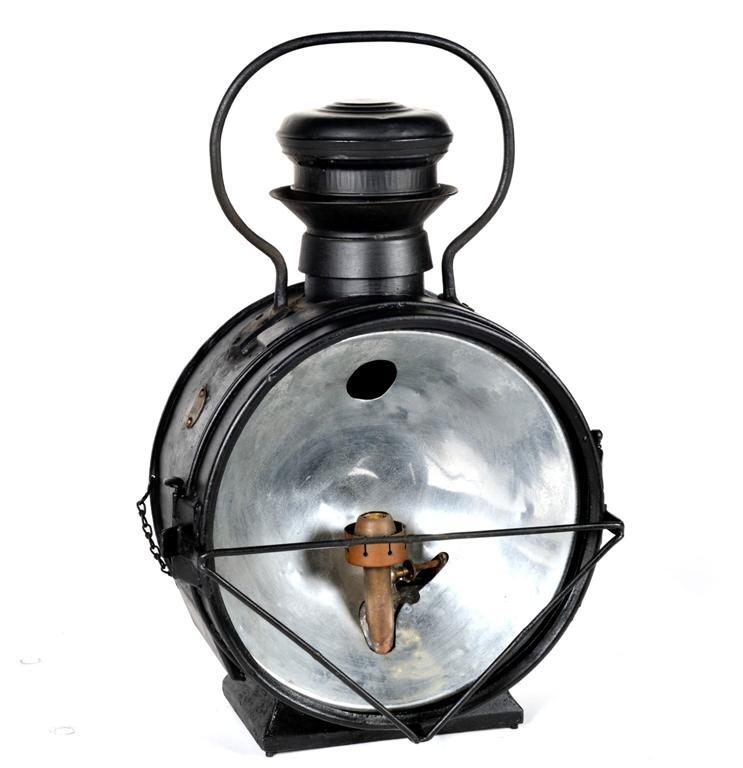 BeschrijvingZwarte lantaarn met vooraan glas. Deze lantaarn werd als lichtbron vooraan op een locomotief geplaatst. Aan de linkerzijde bevindt zich op sommige exemplaren het NMBS-logo.