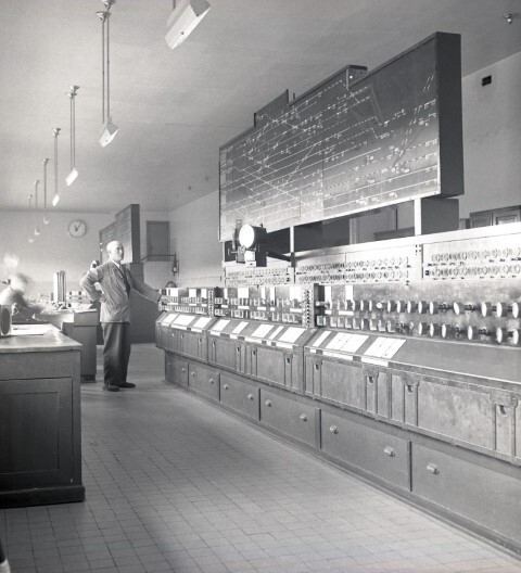 Deze fotogroep bestaat uit drie negatieven. De foto's tonen het interieur van de seinpost. Met behulp van krukken worden de reiswegen vastgelegd en seinen en wissels bediend. Boven de seintafel bevindt zich het optisch bord waarop lampjes de bezette sporen, de vastgelegde reisweg en de stand van wissels en seinen weergeven. Op foto C zien we de omroepers van de treinen.