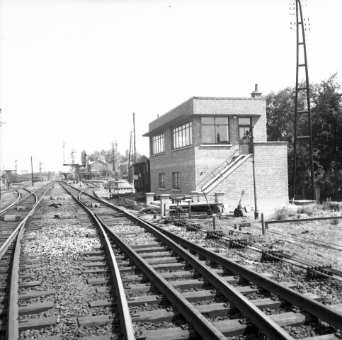De fotogroep bestaat uit twee negatieven. Ze tonen de buitenzijde van de seinpost. Voor de trap naar het seinhuis bevinden zich hendels voor het bedienen van wissels. Naast de spoorlijn staan telefoonpalen. Op de achtergrond zien we een mechanisch sein en de zijgevel van het stationsgebouw.