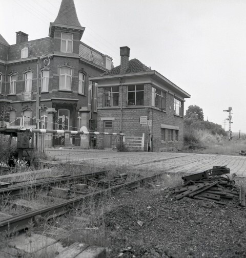 De seinpost is vermoedelijk met een seingestel Siemens uitgerust. De overweg ernaast is gesloten. De sporen zijn deels uitgebroken of overwoekerd door onkruid. Op de achtergrond zien we een mechanisch sein voor drie standen.
