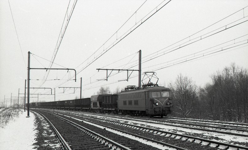 BeschrijvingDeze locomotief behoort tot de reeks 23. Ze versleept een goederentrein bestaande uit open stortwagens.